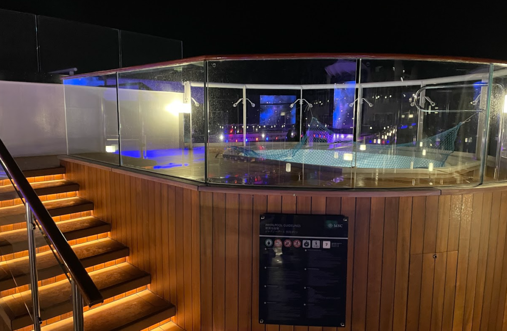 MSCベリッシマには子どもが楽しめるプールがありますが、赤ちゃん向けの浅いプールは見当たりませんでした。