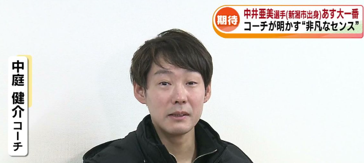 中井亜美選手の男性コーチとしてキスアンドクライに映っているのは、中庭健介コーチです。